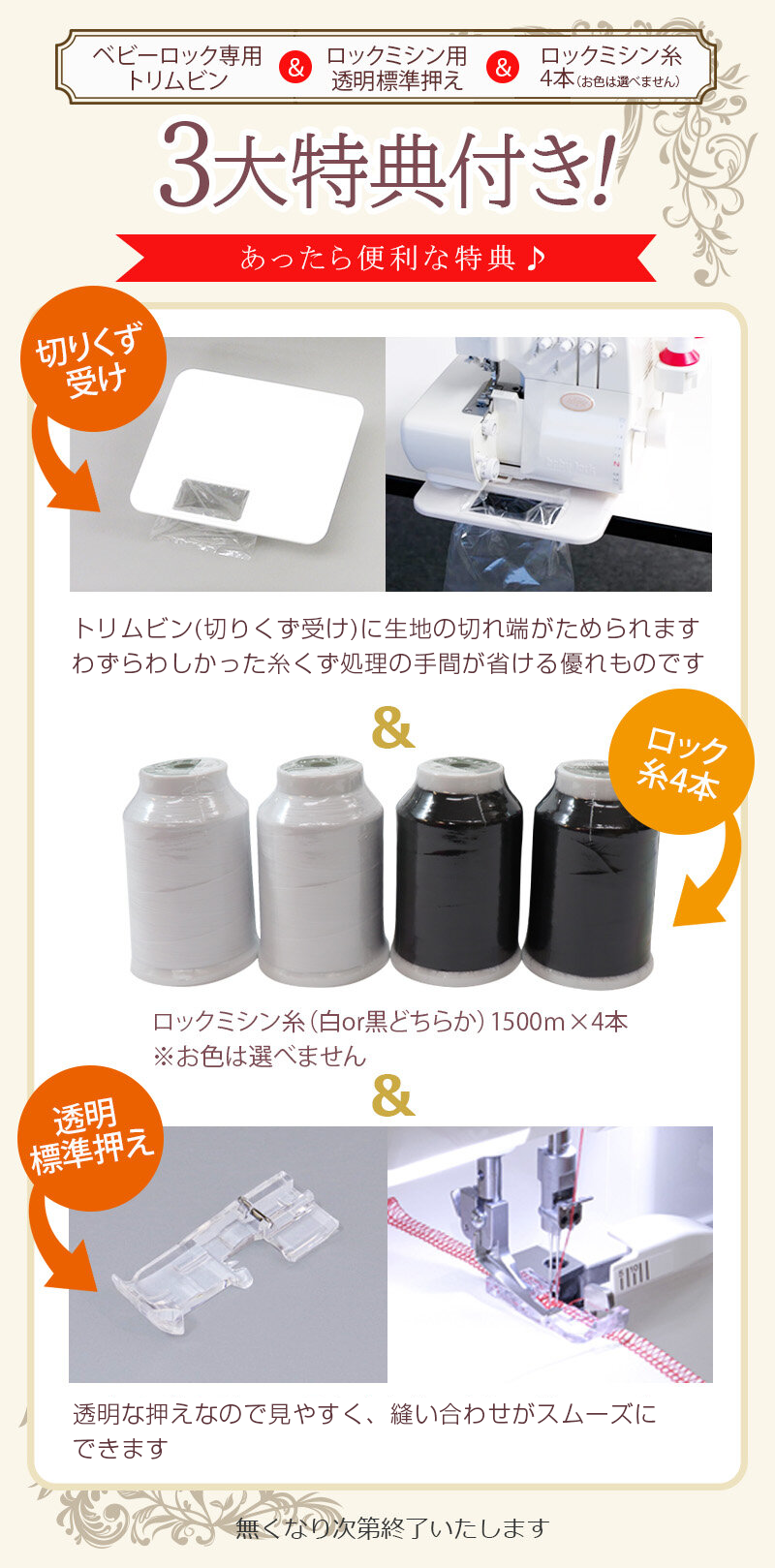 ロックミシン「衣縫人BL5700EXS、糸取物語BL69WJ」の特典はこちら!