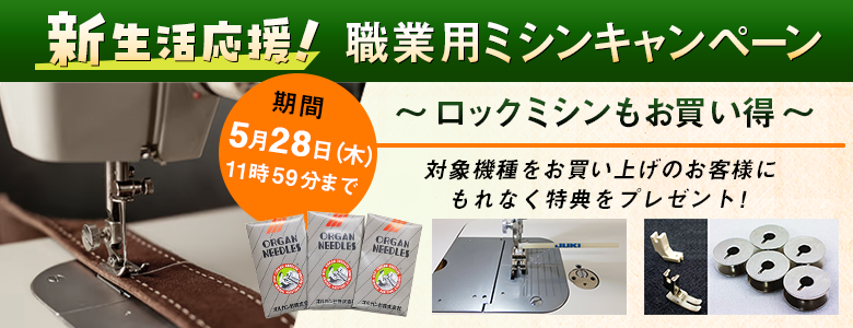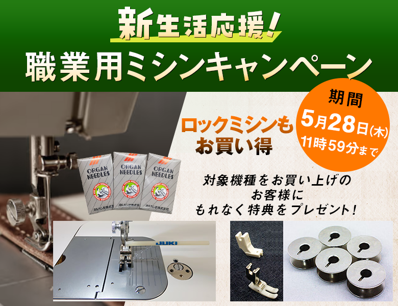 トップ > > 2026年 職業用ミシンキャンペーン開催します!期間:2026年3月31日(火)17:00~2026年5月28日(木)11:59まで