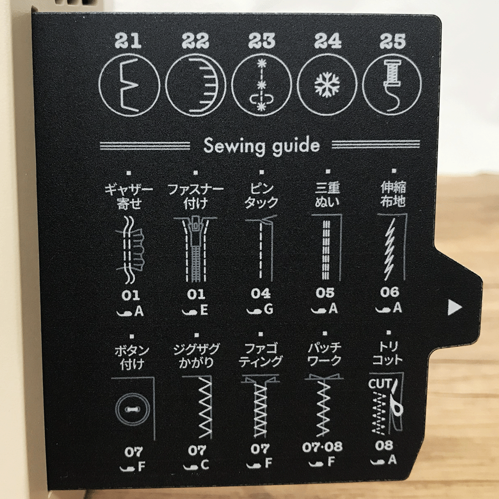 ミシン本体がスタイリッシュで他にはないカラーとデザイン性が特徴で、その上自動糸切り、止め縫い、スピードコントローラーの搭載、模様縫い早見表もミシン本体に設置されているため機能面も優れております。