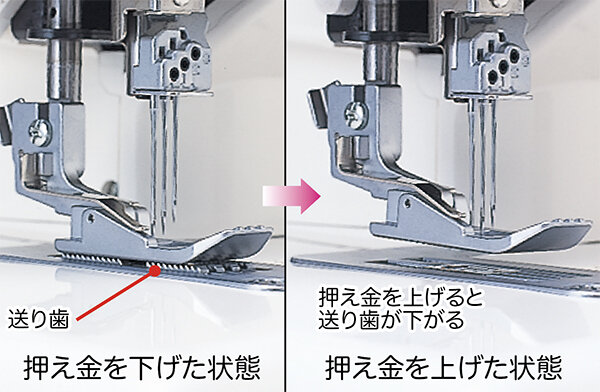 レバーひとつで、伸縮素材もきれいな仕上がり。難しい伸ばし縫い、縮み縫いがラクラク。