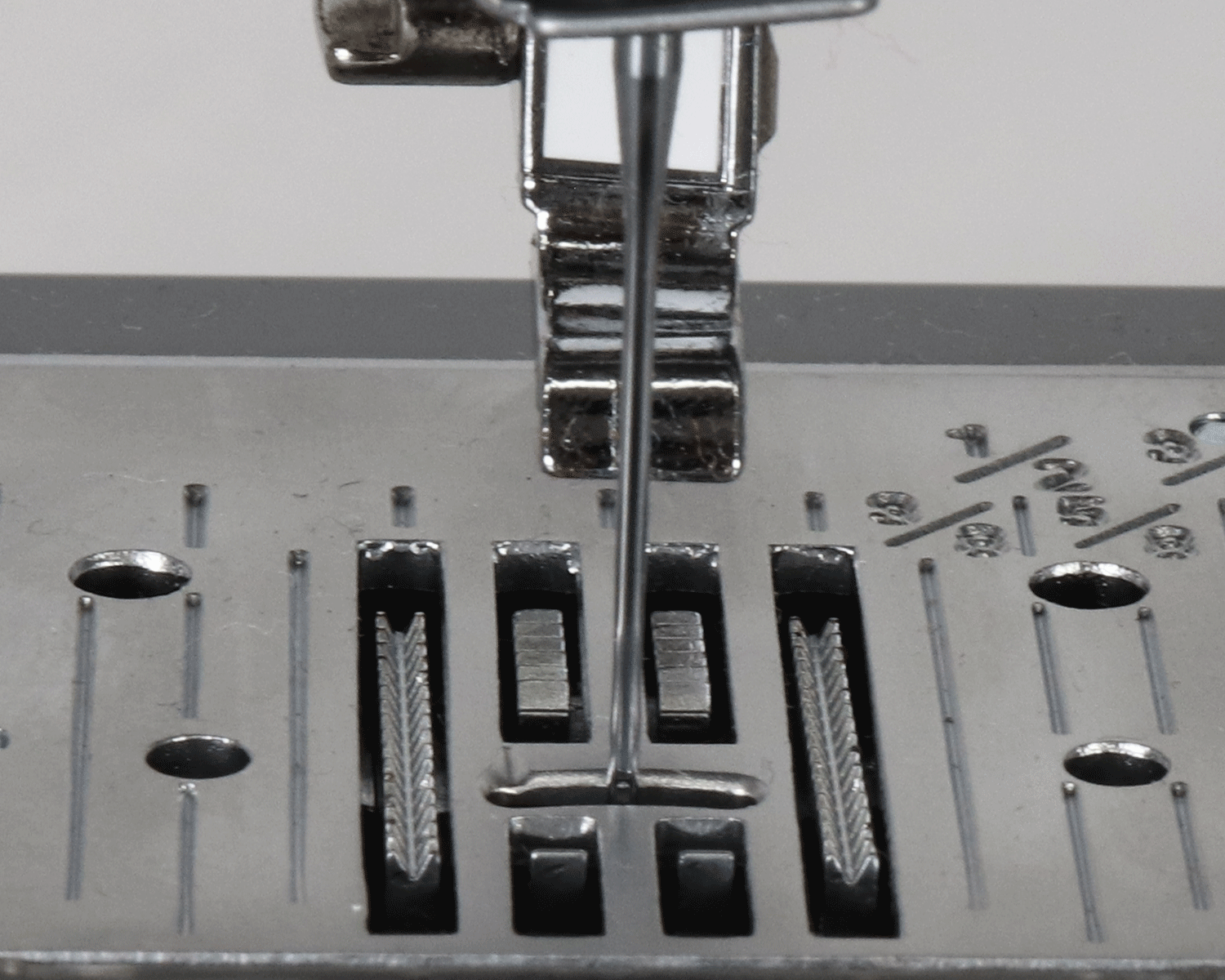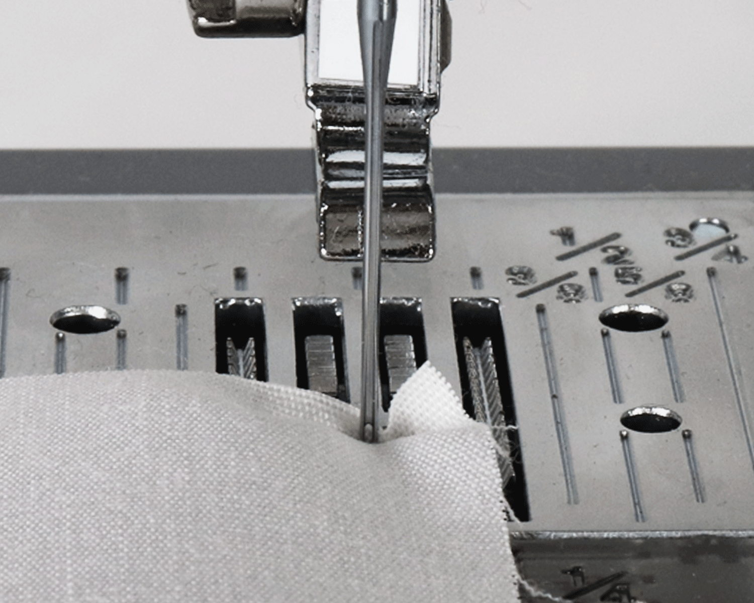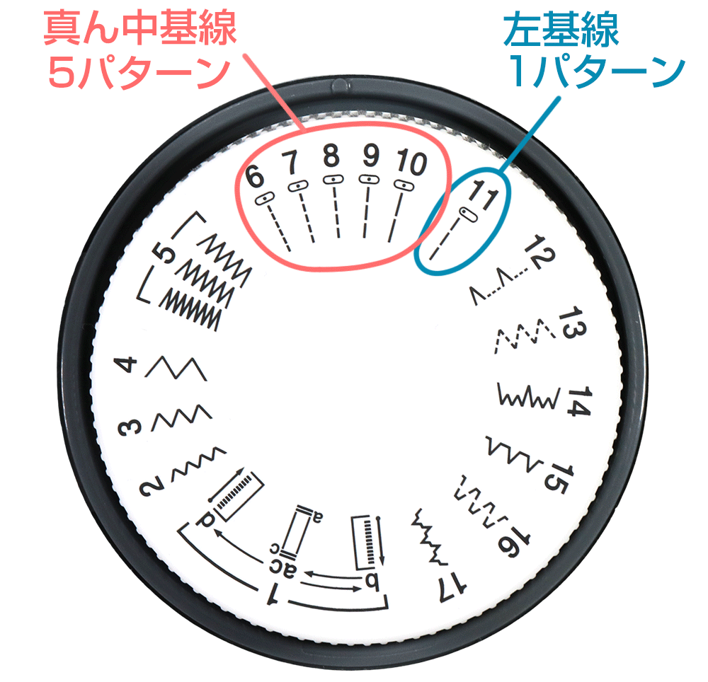 薄地や針穴にくい込みやすい素材は左基線で!針が針穴に近いのでくい込みにくくなります。