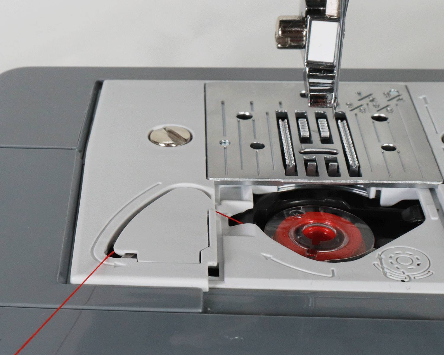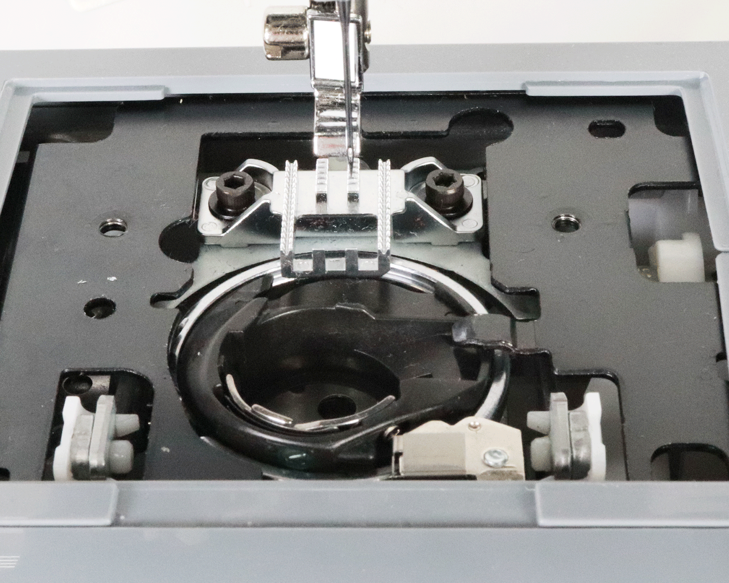 ボビンをセットしたら余り糸をカットするだけ、上糸で下糸を引き上げる必要がありません