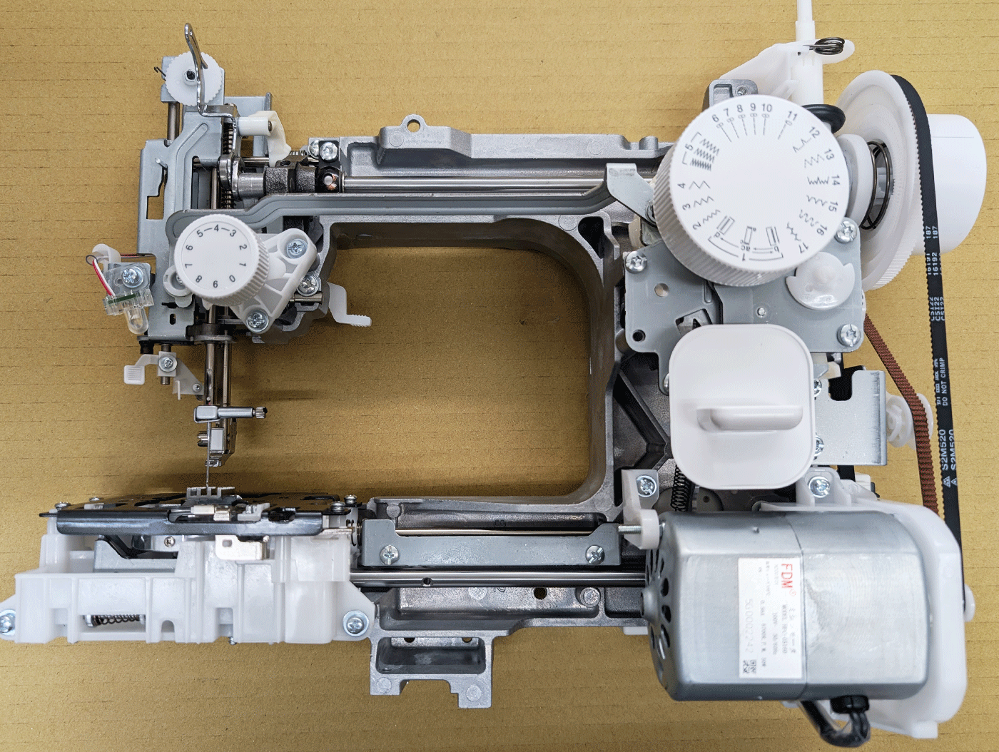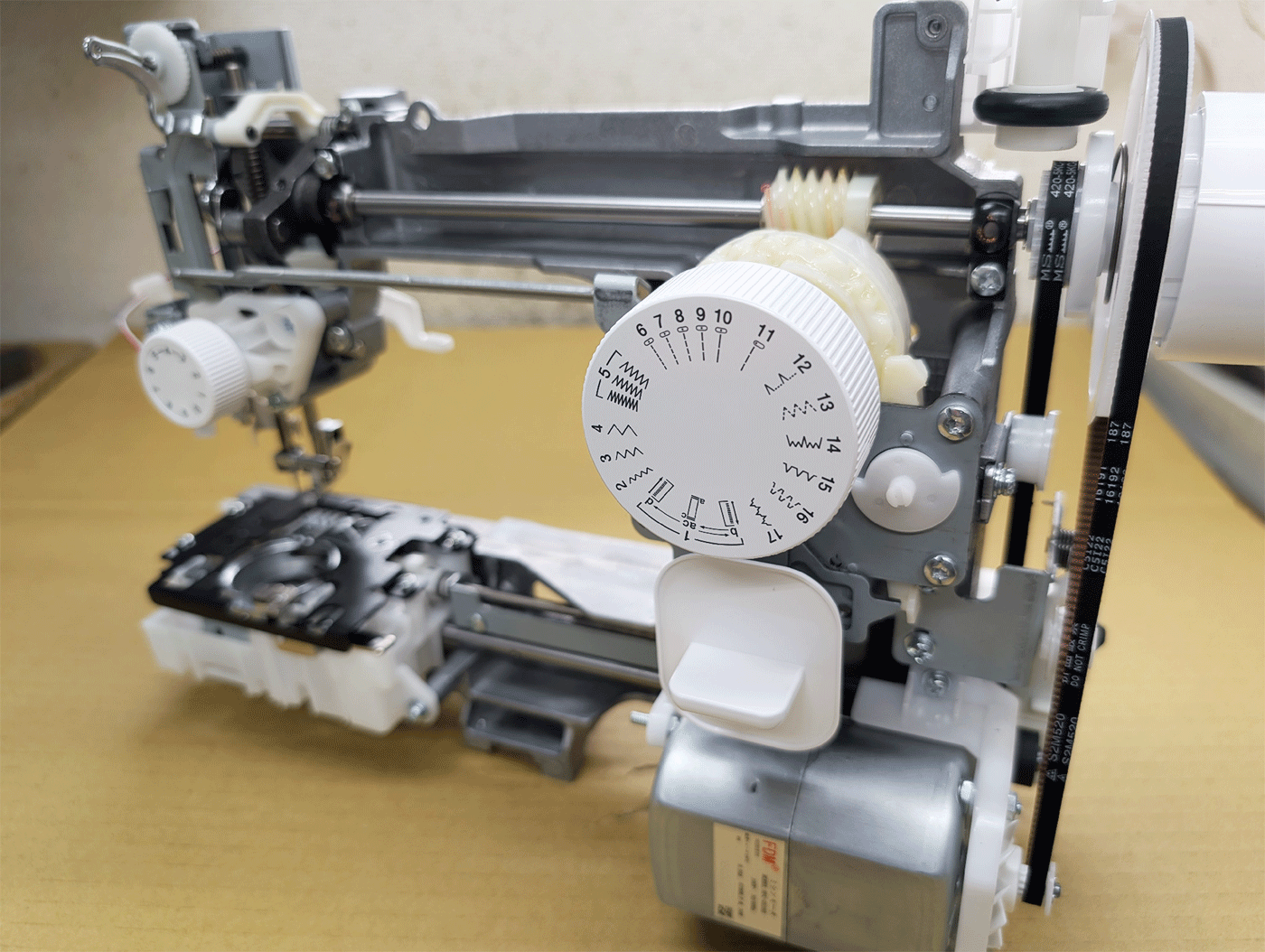 電動ミシンには本体内に複数の模様カム(歯車)が内蔵されています。
