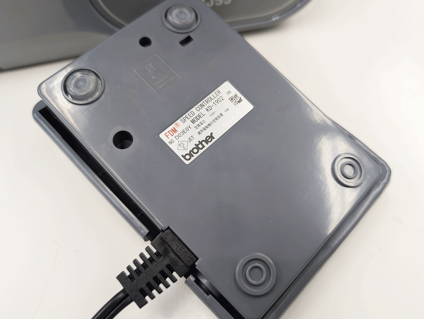 ちなみに、付属のフットコントローラーを確認したところ、ブラザーロックミシン「かがり4」に使用されているフットコントローラーが装備されていました。