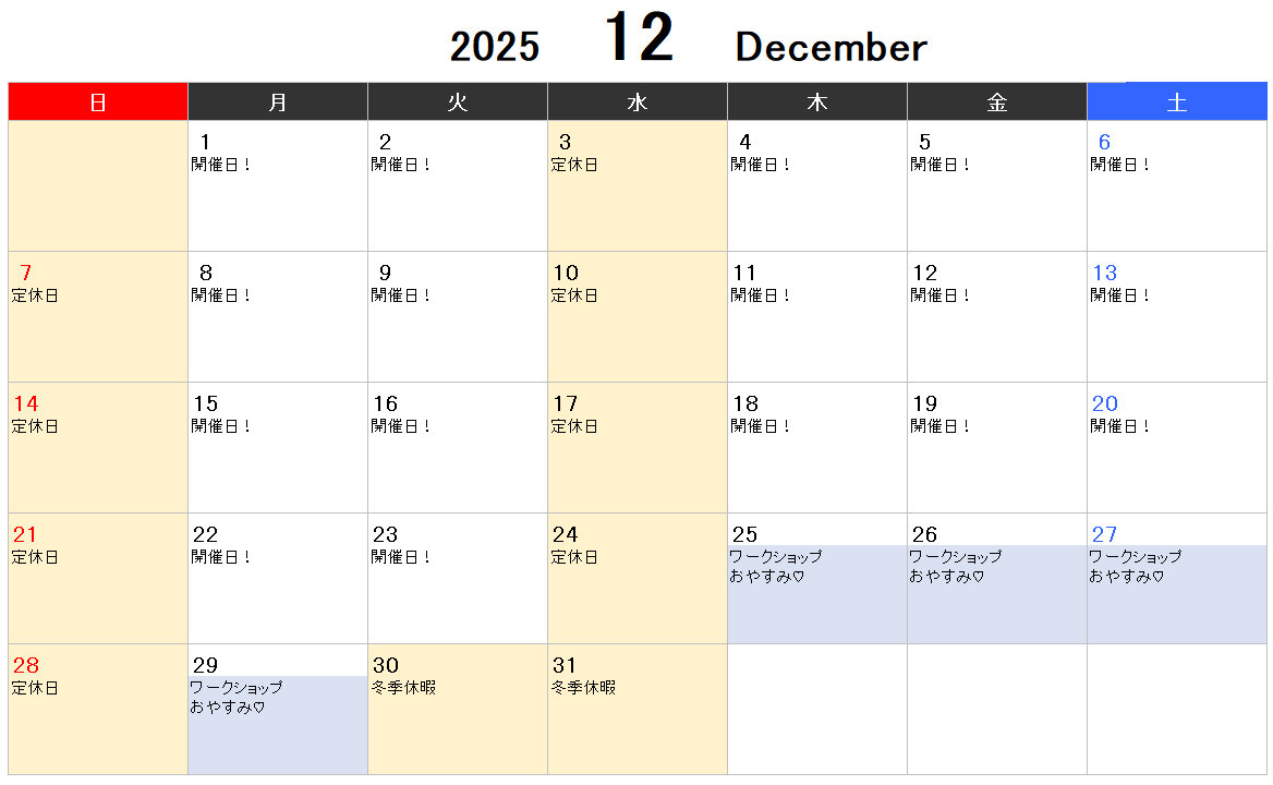 ・作業スピードによっては予定時間をオーバーする可能性があります