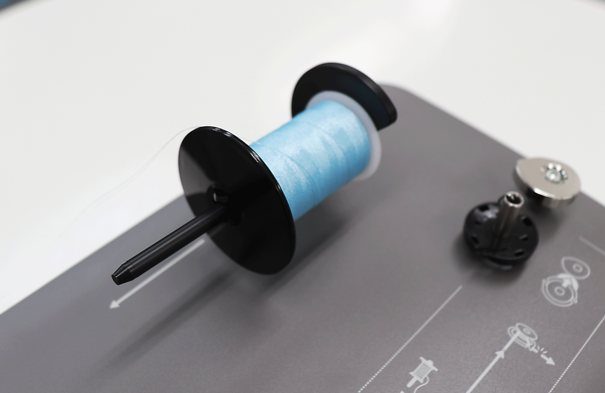 帽子枠のような特殊な枠以外は外さなくても下糸交換ができます。 なお、ボビンケースは専用のものを使用します。 一般の職業用ミシンや工業用ミシンのボビンケースは、パッと見て形状が似ているのですが、使用できませんのでご注意ください。 |