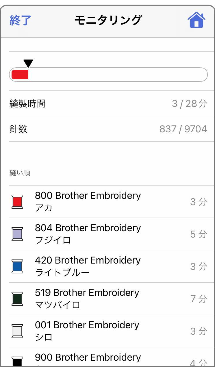 総針数は9704針に変わりましたが、さらにミシンに転送すると9686針に変わりました。縫製完了予定は28分です。
